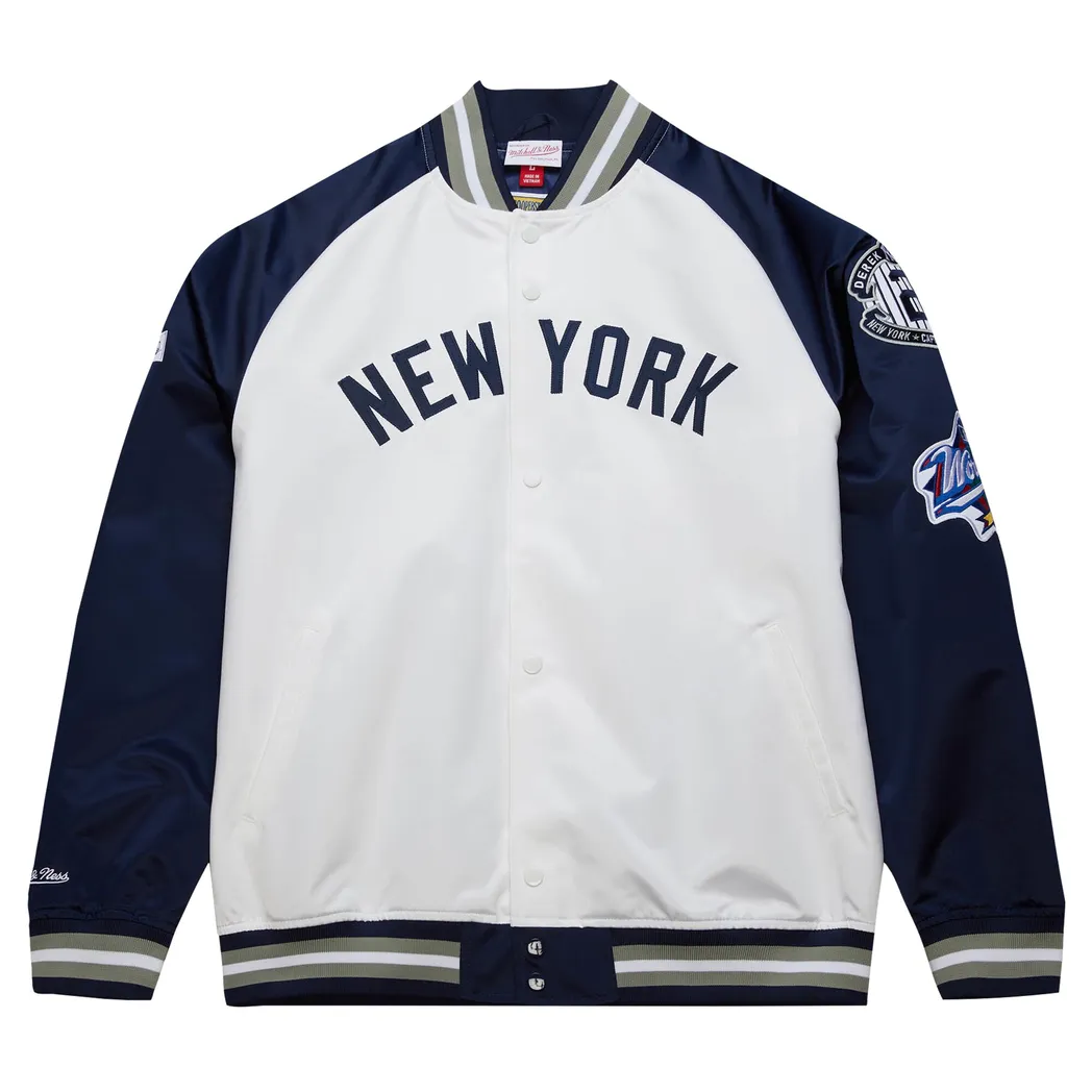 Derek Jeter New York Yankees Mitchell Ness Cooperstown Collection Legends Lightweight Satin Raglan Full-Snap Jacket- White/Navy